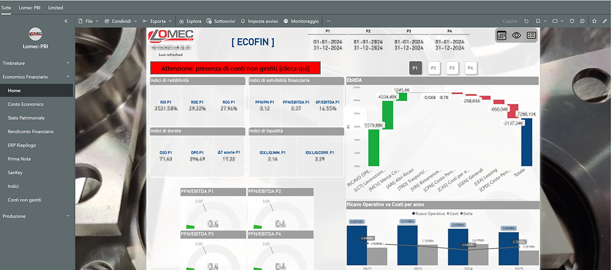 LOMEC Aerospace ha scelto di basare la propria crescita sull’analisi dei dati, sviluppando un progetto di Power Business Intelligence, un sistema avanzato di cruscotti digitali progettati per monitorare costantemente ogni aspetto dell’attività aziendale, dalla produzione ai dati economico-finanziari, fino alle risorse umane.